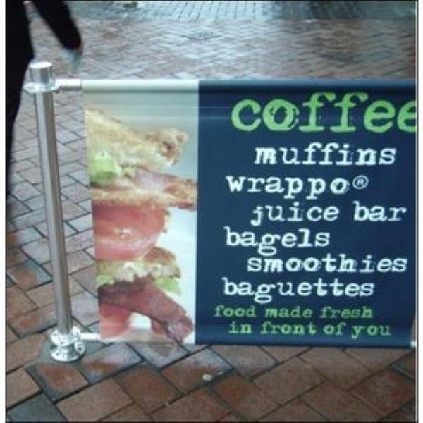 Giving Cafes Coffee Shops And Restaurants Maximum Visibility. Easy To Assemble With An Insert And Lock Design. Approved And Recommended By Many Councils. Custom Full Colour Printed Design On A Range Of Fabrics PVC PVC Mesh And Canvas. Small Size Frame 98cm(H) X 125cm(W). Supplied With 1 Arm And Spring Clips To The Bottom. Minimum Quantity 1.