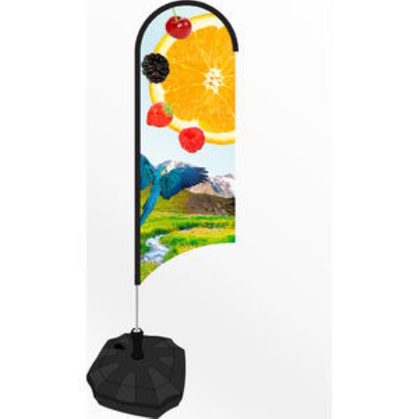 Strong Feather Flag System with Durable Aluminium Metal Click Frame Making It Simple & Easy to Assemble. Lightweight for Indoor & Outdoor Use. Heavy Duty Elasticated Sleeve Excellent Print Quality. Includes Aluminium Metal Pole Kit Single Sided Printed Flag (mirror Image on Reverse) & Water/Sand Base. Other Bases Are Available. Height: 400cm Print Size: 90cm x 360cm Printed Full Colour.