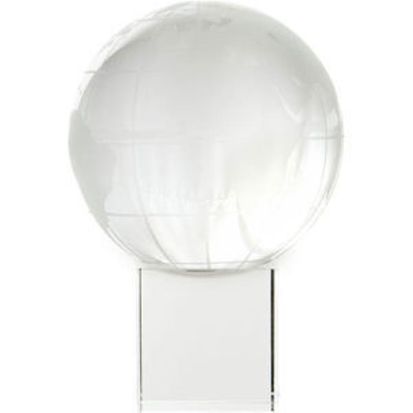 Crystal 100mm globe on a clear cube 2 piece trophy supplied in a satin lined box. Also available with a black cube.