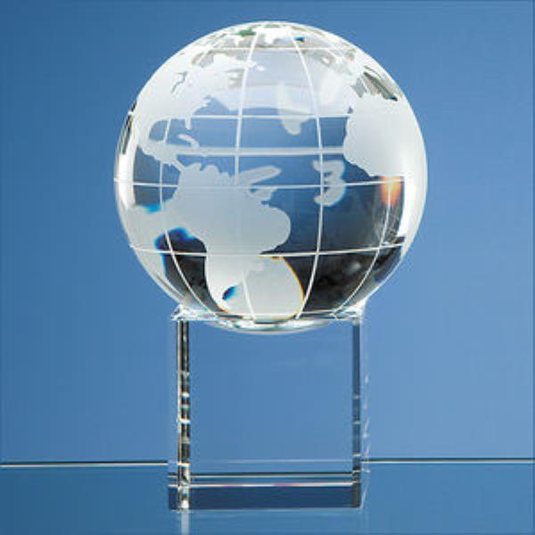 The Globe on clear bases are very effective and stylish, the globe spins freely on the base having been hand crafted out of perfectly clear optical crystal. They are available in 4 sizes and are ideal recognition, achievement or incentive gifts for global, travel or transport based companies. They can be personalised on the base with any crest, logo or wording to create a gift that is sure to take pride of place when put on display at home or at work. They are supplied in a black foam lined presentation box. Print method offered on the product is Digital Colour Printing, Decal(Low Fire Colour Printing), Sandblast Engraving, Sub Surface Engraving. Also available CGi Colour3D, Colour Infill print method contact us for details.