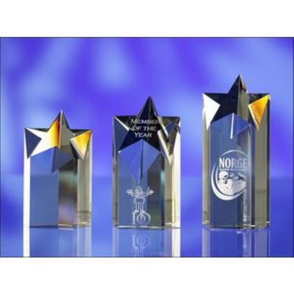 Optical Glass Awards - Stunning star shaped glass awards. We can surface engrave these awards. If you prefer internal engraving please see our other awards.
