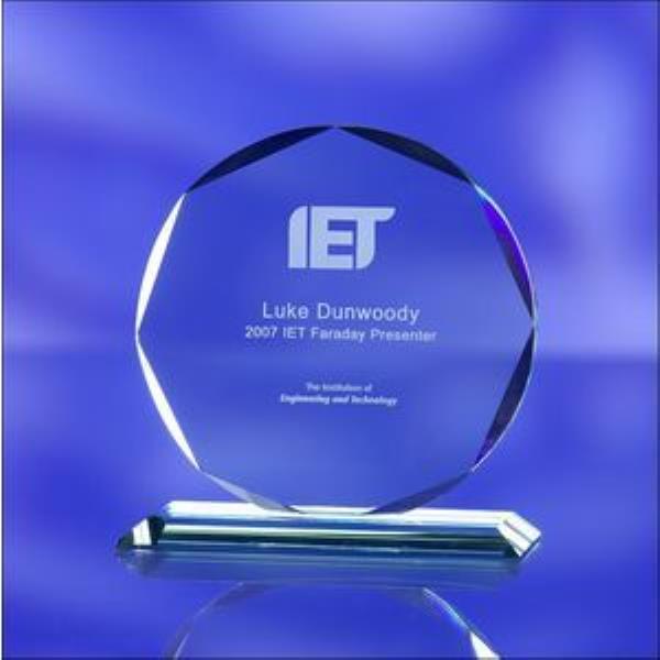 Attractive jade award. Circular shape with faceted edges on base. Award may be engraved to suit customer specification with logo/text. Engraving set up charges will apply.