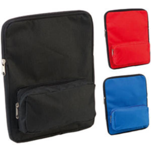 600D Zipped polyester iPad pouch with front accessories pocket.