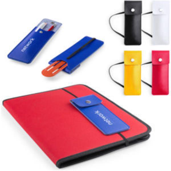 PU multipurpose pouch with outser pocket, elastic strap and press stud closure.