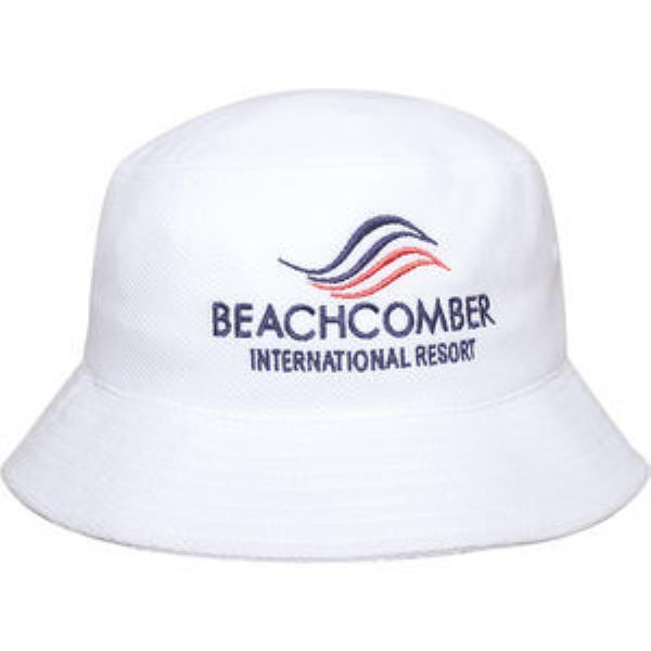 Double pique mesh bucket hat. Sewn eyelets, medium or large/ extra large