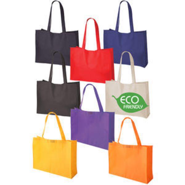 Environmentally friendly, 110g non-woven, coated water resistant polypropylene shopper tote with a Velcro