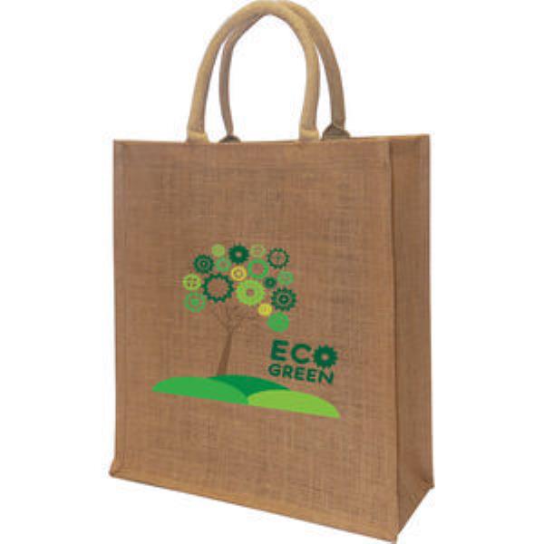 Natural Jute Exhibition bag with 40cms Dyed Cotton web handles 14/15 weave. 35x39x15cm Inside lamination and 15cm gusset. Ideal for your Exhibitions and Product launches. Bespoke Available! Minimum quantity: 100.