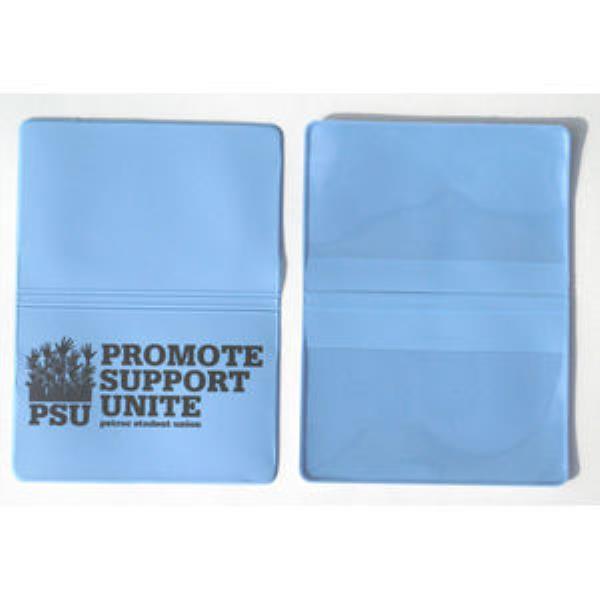 Membership card holder / bus pass holder has two clear pockets to hold information cards. These are vinyl welded with clear pockets on the inside, phthalate free. Product size: 94mm x 64mm closed | 94mm x 128mm open | 350 micron PVC | 120 micron PVC Clear pockets.