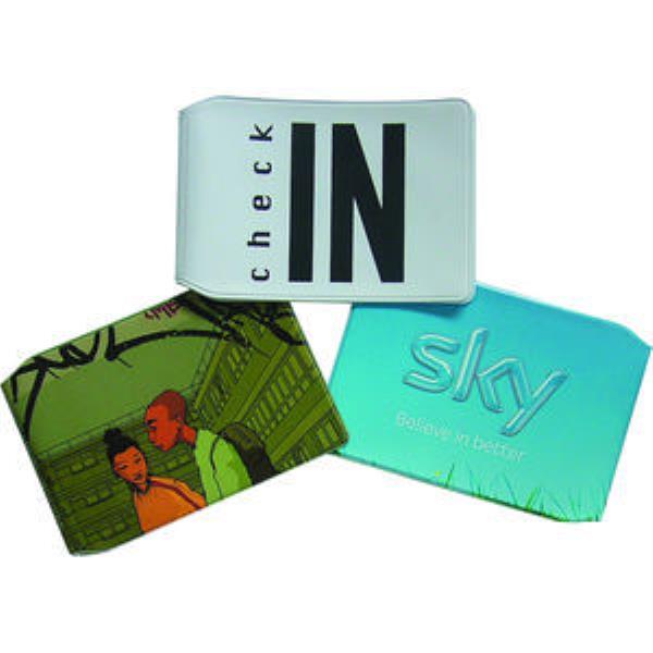 Oyster Card Wallets are a great functional product, produced from vinyl. Supplied as standard with two clear inner pockets. Can be printed single colour up to full colour.