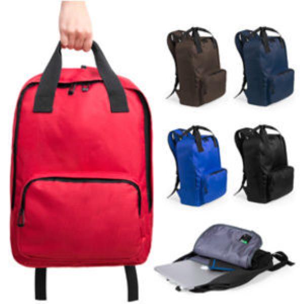 Polyester 600D backpack. Including padded (approx. 15"")laptop compartment. Padded back and adjustable padded shoulder straps. Carry handle. Front zipped pocket and main zipped compartment.