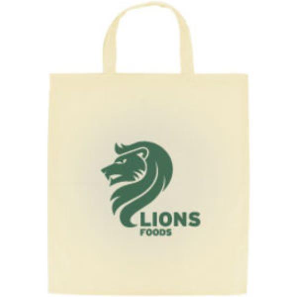 Undyed cotton tote style shopping bag with short handles. Ideal for carrying groceries and reducing the use of plastic bags.