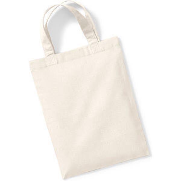 Natural, White, Black, Royal Blue, Bright Red, Fushcia, Yellow Small Shopper Tote Bag 100% Cotton - 140gsm Dimensions: 19 x 25 cm Handle length: 25 cm 2.5 litre capacity Weight 25g Capacity: 2.5 litres