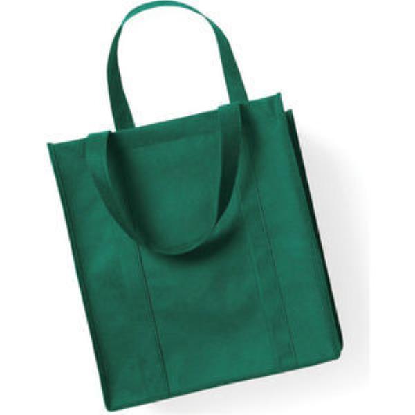 100% Non-woven polypropylene 140g 33 x 38 x 25 cm Royal Blue, Bottle Green Can be carried by hand or over the shoulder. Baseboard for even weight distribution. Handle length 54cm. Capacity: 26 Litres MOQ 1,000