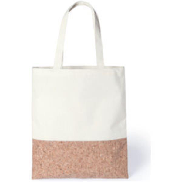 Shopping tote bag with long handles for easy carrying. The lower half of the bag is made with cork and the upper half made with cotton. The perfect accessory for grocery shopping.