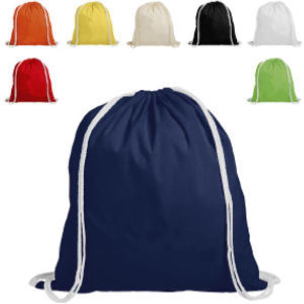 100% cotton drawstring backpack. Supplied in a range of colours.