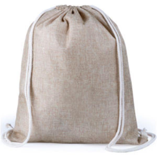 Drawstring backpack in a soft combination of polyester and cotton materials of 180g/m2 in natural colours. With extra thick, white colour closing strings. Reinforced corners in matching colour.