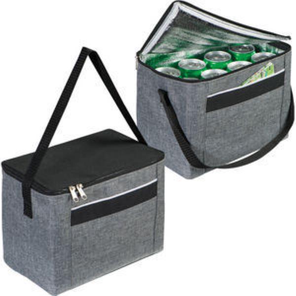 Non-woven cooler bag with carrying handle, zipper, space for six 0.5l cans or bottles and front compartment. We will print your logo on the front.