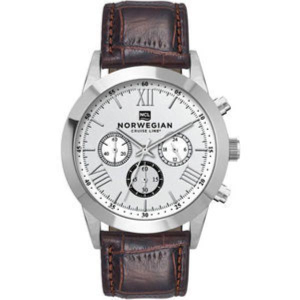 Alloy case, silver dial with silver raised ND indexes, padded brown crocodile back pattern leather strap