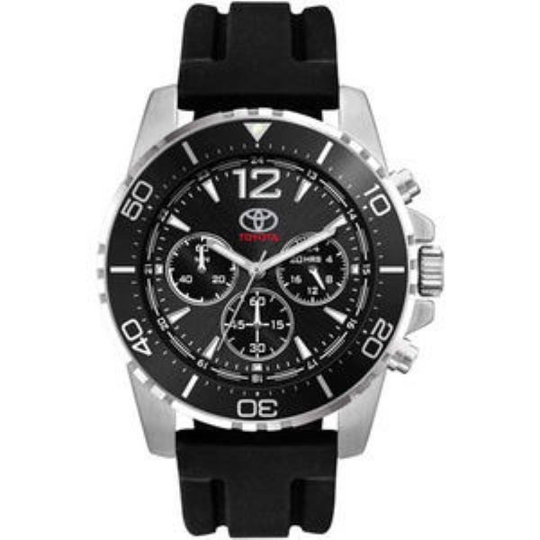 Alloy case, black sunray dial with white luminous printed on silver raised ND indexes, black silicon rubber strap