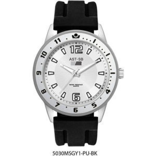 Alloy Case, sunray silver dial with white luminous printed on black raised ND indexes, black silicon rubber strap