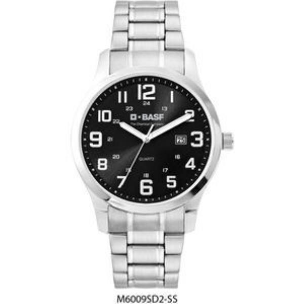 Alloy case, black sunray dial with silver raised ND indexes w/black tension ring, folded S/S band