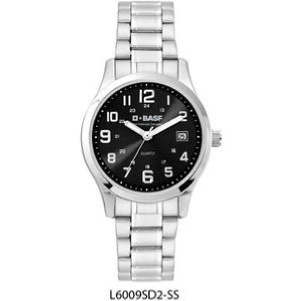 Alloy case, black sunray dial with silver raised ND indexes w/black tension ring, folded S/S band