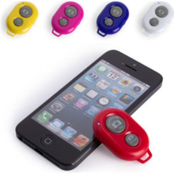 Bluetooth remote shutter for use with a selfie stick. The remote shutter pairs with your smart phone via Bluetooth connection to enable you to wirelessly take photographs.