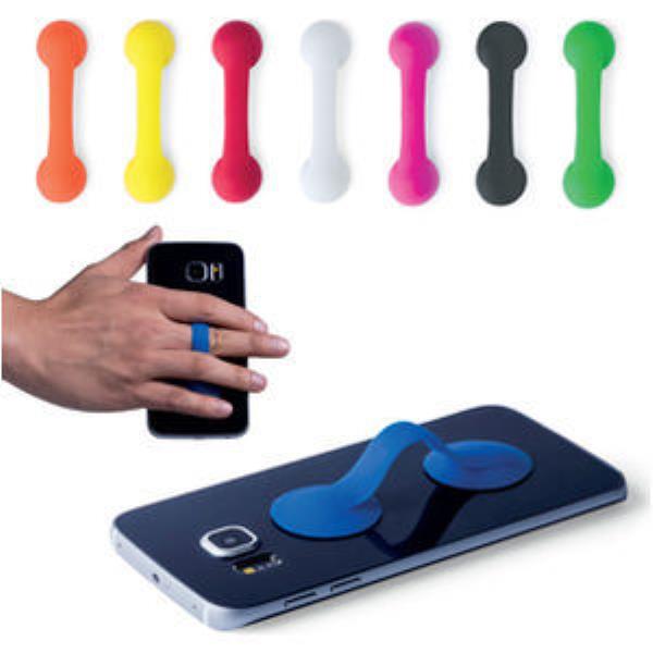 Silicone phone stand with two suction cups. Suitable for smart phones or holding cables.