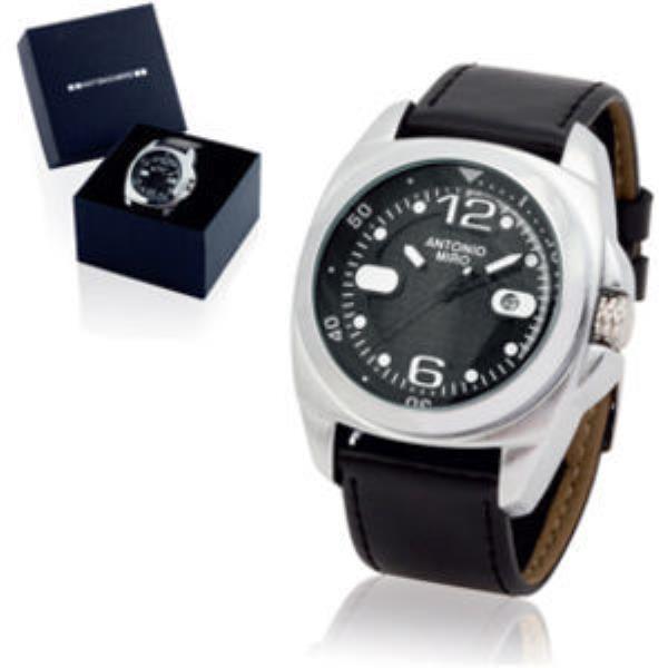 Antonio Miro metal and PU watch, Japanese quartz movement, water resistant 30m, leather strap, mineral glass.