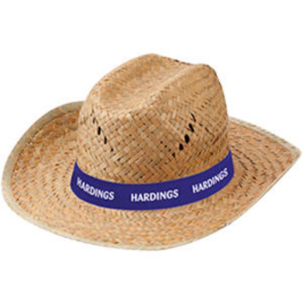 Straw hat with coloured band.