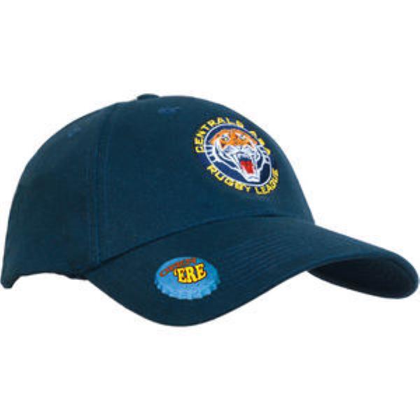 Brushed heavy cotton with bottle opener baseball cap. Structured 6 panel, low profile, pre curved peak with bottle opener, short touch strap