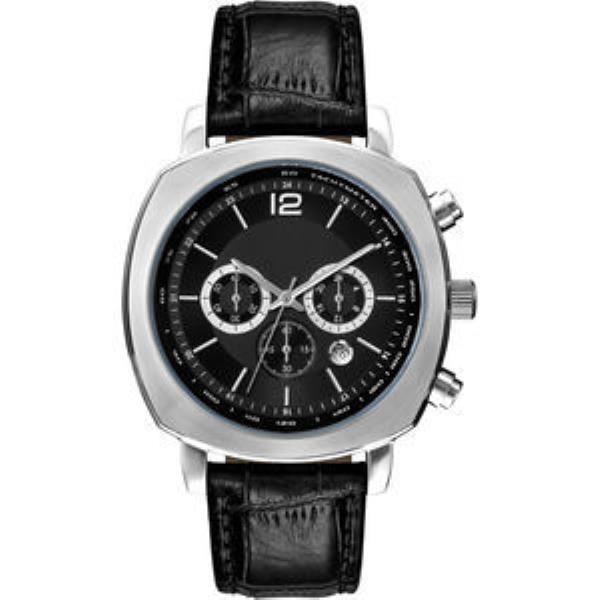 Silver Raised ND Indexes, 2-Tone Black Dial. Padded Black Croco Back Grain Italian Leather Strap.