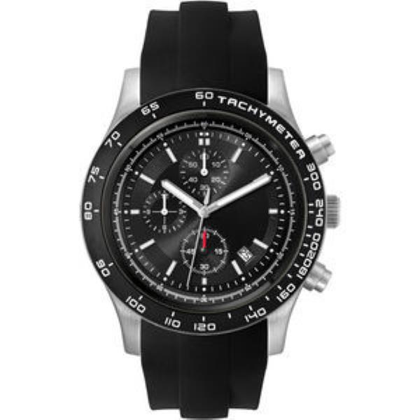 White Luminous Printed on Silver Applied Indexes, CD Effect Black Sunray Dial, Black PU Rubber Strap.