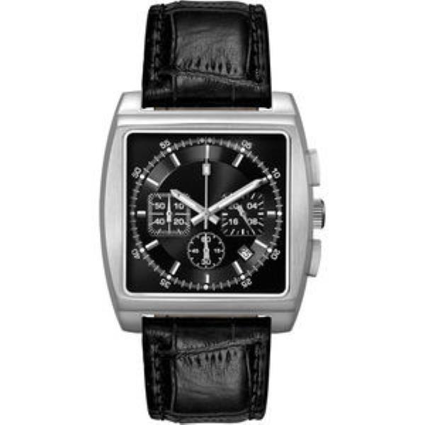 Silver Applied Indexes, CD Effect Black Sunray Dial, Padded Black Croco Back Grain Italian Leather Strap.