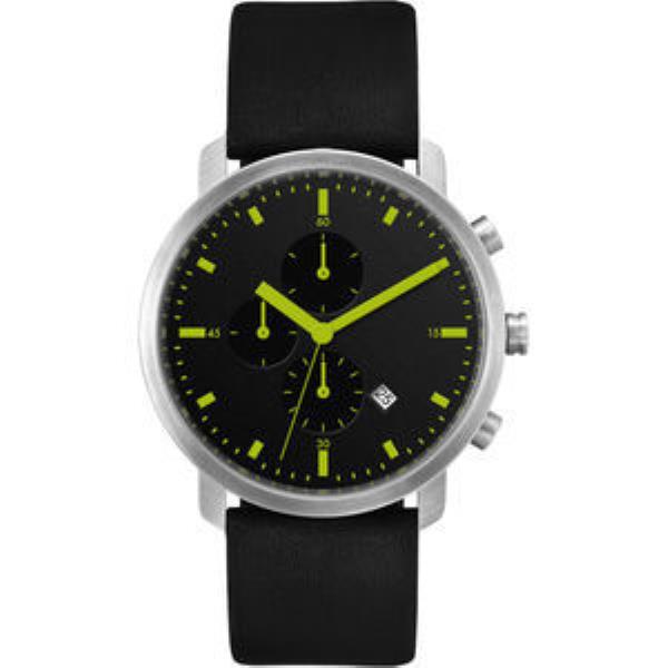 Green Printed Indexes, Matte Black Dial, Flat Black Natural Leather Strap.