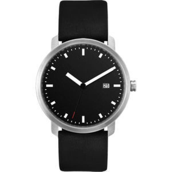 White Luminous Printed Indexes, Matte Black Dial. Flat Black Natural Leather Strap.