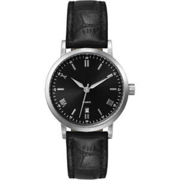 Silver Applied Indexes, Black Sunray Dial. Padded Black Croco Back Grain Italian Leather Strap.