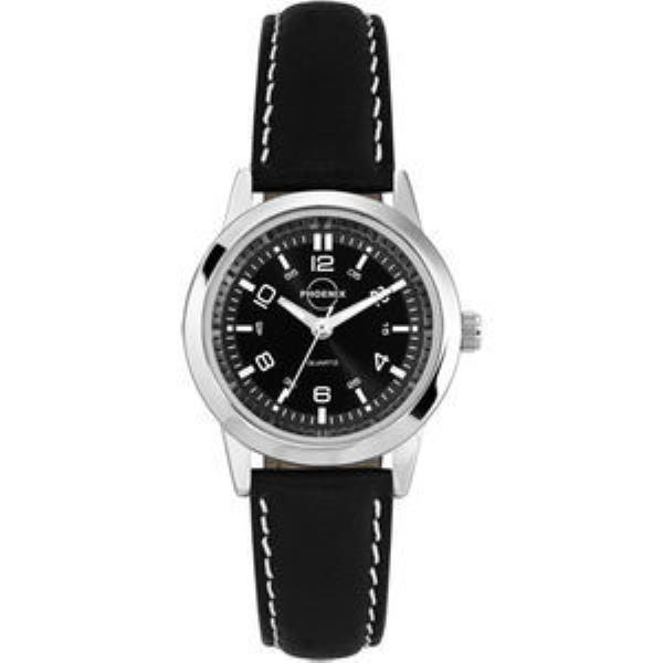 White Printed Indexes, Black Sunray Dial, Padded Black Natural Leather Strap w/White Stitching