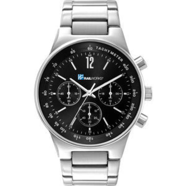Alloy case, black sunray dial with silver raised ND indexes, solid finished wrapped edged S/S band