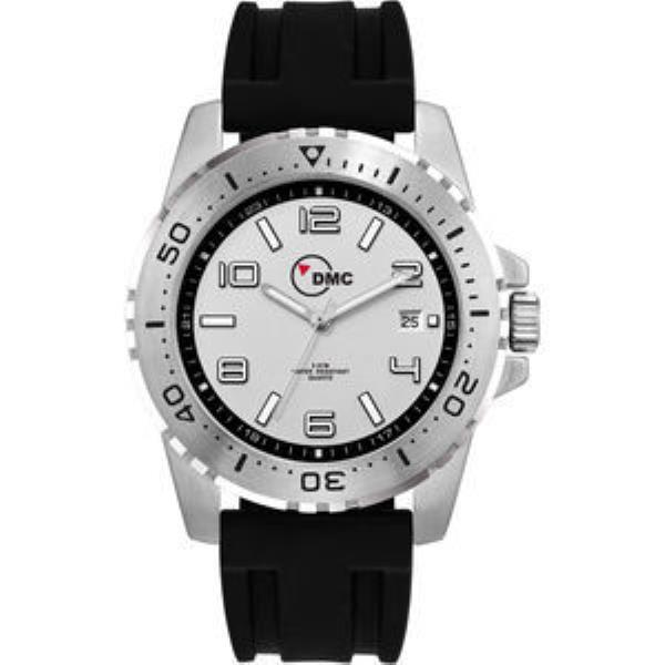 White Luminous Printed on Silver Embossed Indexes, Matte Silver Dial, Black PU Rubber Strap, with Date