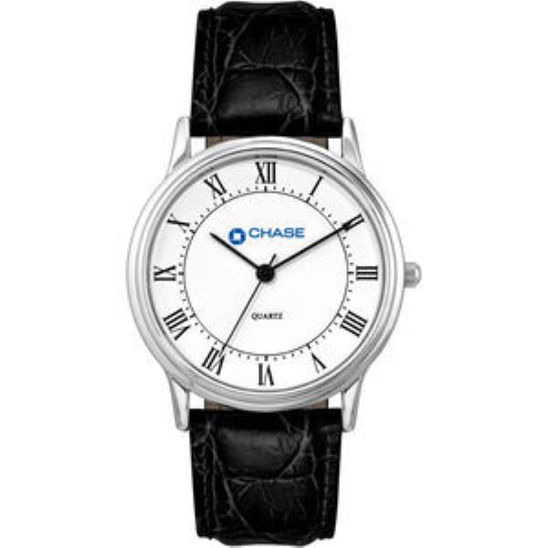 Black Printed Indexes, Glossy White Dial, Padded Black Croco Pattern Leather Strap