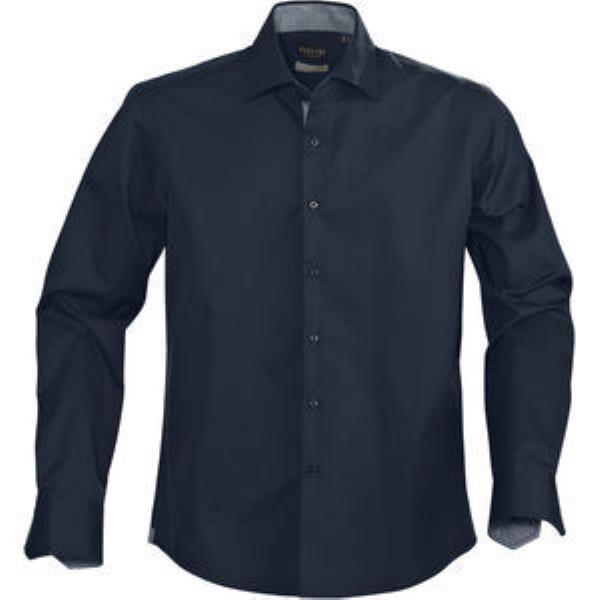 High quality shirt in combed cotton. Shirt in easy care treated fabric and enhanced lining seams, collar and sleeve ends. Solid colour bodyfabric with contrast fabric under collar, placket and bottom sleeve. Modern fit.