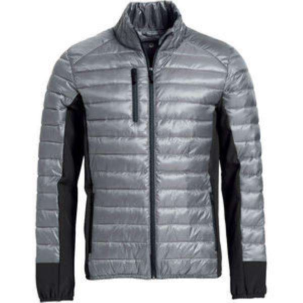 Men's modern jacket in down-like padding and softshell panels. 3 exterior pockets with zippers and 2 interior pockets. Earphone loop in the neck. -Fabric: Shell 1: 100% polyester. Shell 2: 96% polyester, 4% spandex. Padding: down-like in - 100% polyester. Lining: 100% polyester -Gender: Men -Available in sizes XS-2XL. Contact us for more details.