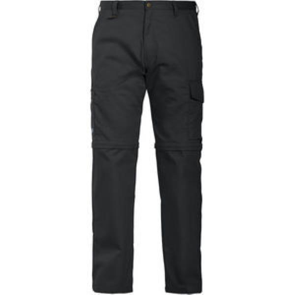 Waistpants without front pleat and with detachable legs. Side pockets in front, safety pocket with zipper on right side. Two exterior back pockets. Two leg pockets. Left leg pocket has flap and interior mobile telephone pocket. Right leg pocket has room for mobile telephone, pens, paper and folding rule. D-ring in front. Loops under back pockets and leg pockets.