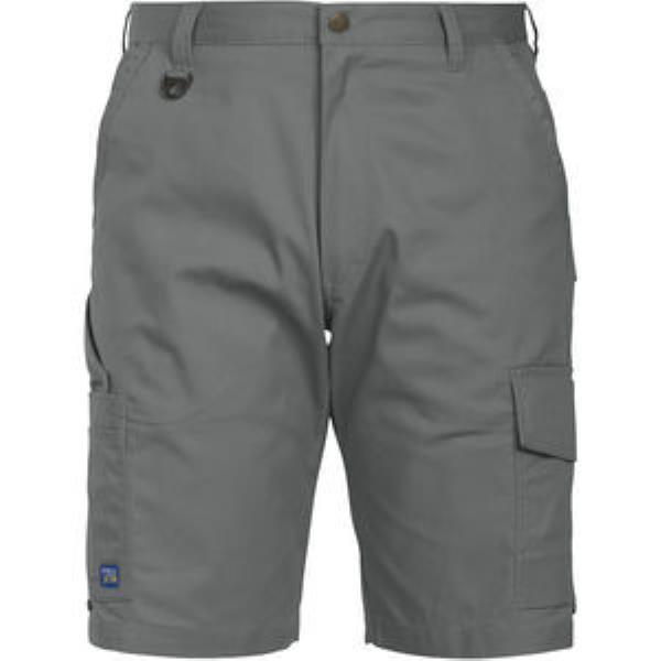 Shorts without front pleat. Side pockets in front, safety pocket with zipper on right side. Two exterior back pockets. Two leg pockets. Left leg pocket has flap and interior mobile telephone pocket. Right leg pocket has room for mobile telephone, pens, paper and folding rule. D-ring in front. Loops under back pockets and leg pockets.