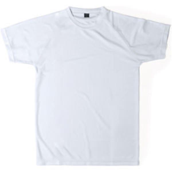 Plain white adult shirt made from 55% nylon and 45% polyester.