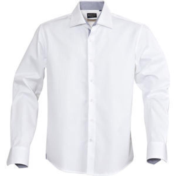 High quality shirt in combed cotton. Shirt in easy care treated fabric and enhanced lining seams, collar and sleeve ends. Solid colour bodyfabric with contrast fabric under collar, placket and bottom sleeve. Modern fit.