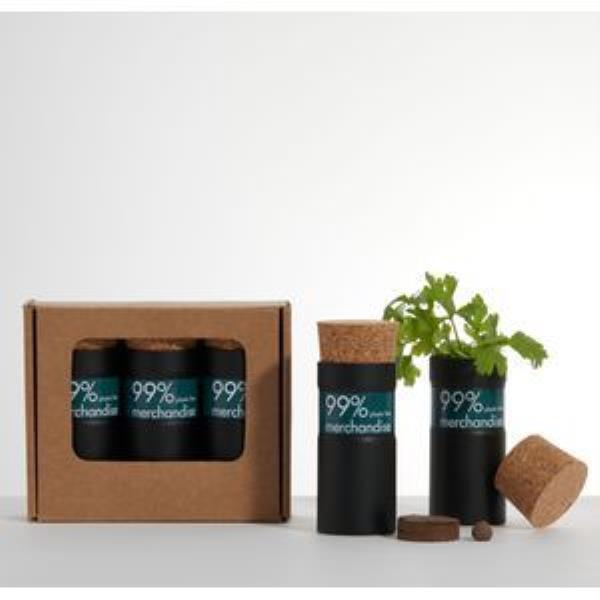 Choose a mix or three for the perfect green fingered gift. Inimitable desktop garden pots come complete with innovative seedballs that will germinate in around 14 days. Complete with cork stopper, growing instructions and organic soil coin with full colour label, laser engraving or rotary screen to maximise your logo or message. Available in silver brushed, matt black or a mix of both and presented in branded Kraft window box which can be bulk packed or personalised and individually posted.
