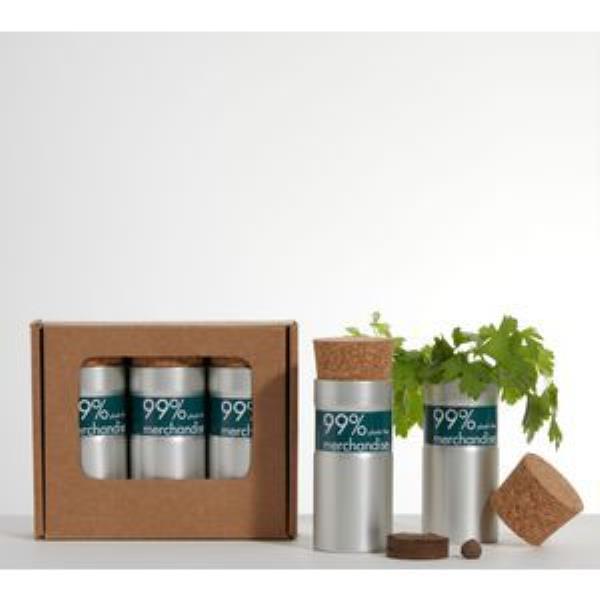Choose a mix or three for the perfect green fingered gift. Inimitable desktop garden pots come complete with innovative seedballs that will germinate in around 14 days. Complete with cork stopper, growing instructions and organic soil coin with full colour label, laser engraving or rotary screen to maximise your logo or message. Available in silver brushed, matt black or a mix of both and presented in branded Kraft window box which can be bulk packed or personalised and individually posted.