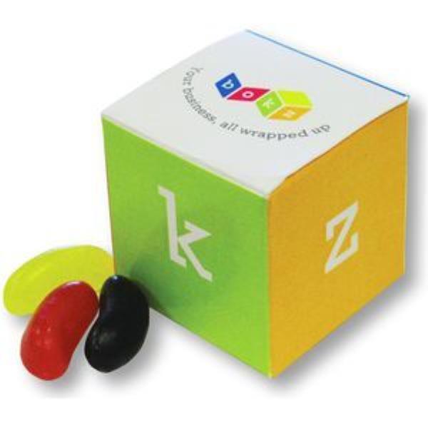 40mm Cube box containing jelly beans or Mint Imperials. Other sweet fillings are available on request.
